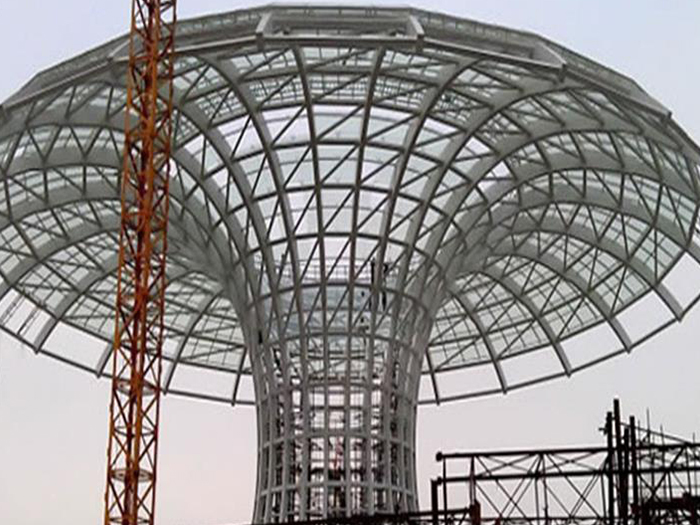 二、球形网架结构因其结构新颖,受力合理,自重轻、用钢量低等优点。如大型体育场馆球形宁波螺栓球网架、公共场馆球形网架、电厂宁波螺栓球网架、水泥工业球形网架、仓储物流球形网架、宁波干煤棚工业球形网架、宁波收费站宁波加油站球形网架、展览中心、影剧院、商场、航站楼、候车厅、工厂宁波车间、仓库、电视塔等球形螺栓球节点网架。国内球形网架结构主要分为:宁波焊接球节点网架及螺栓球节点网架两种。螺栓球节点网架其构件工厂内加工量较大,现场安装便捷,适用于现场工期紧,宁波施工条件、用电量受制约,网架形状复杂、宁波杆件定位困难的异形结构。螺栓球节点球形网架系统基本由宁波杆件、螺栓球、支撑支座等组成。按照节点形式可分为交叉宁波桁架体系、四角锥体系、三角锥体系等。支撑方式多为固定支座支撑。对于大面积、大跨度及有特殊受力或伸缩要求的网架结构可采用橡胶支座、滑移支座、球铰支座等支撑形式,以满足结构自身的受力稳定、均衡,便于内力释放等设计要求。